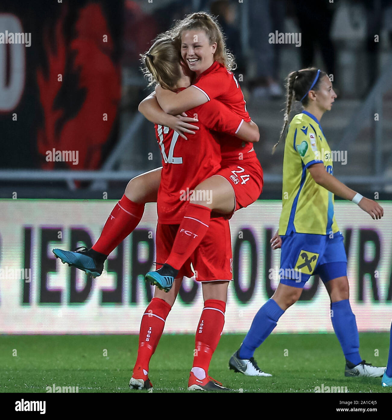 Enschede 25 09 2019 Grolsch Veste Round Of 32 Champions League Twente St Polten Women Season 2019 2020 Fc Twente Player Lynn Wilms L Fc Twente Player Romy Speelman R During The Match Stock Photo Alamy